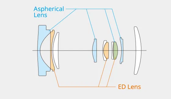 | 렌즈 구성 | 9군 10매 (비구면 렌즈 4매, ED 렌즈 3매) | |