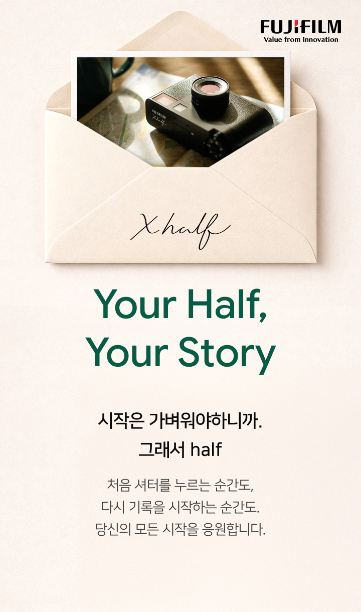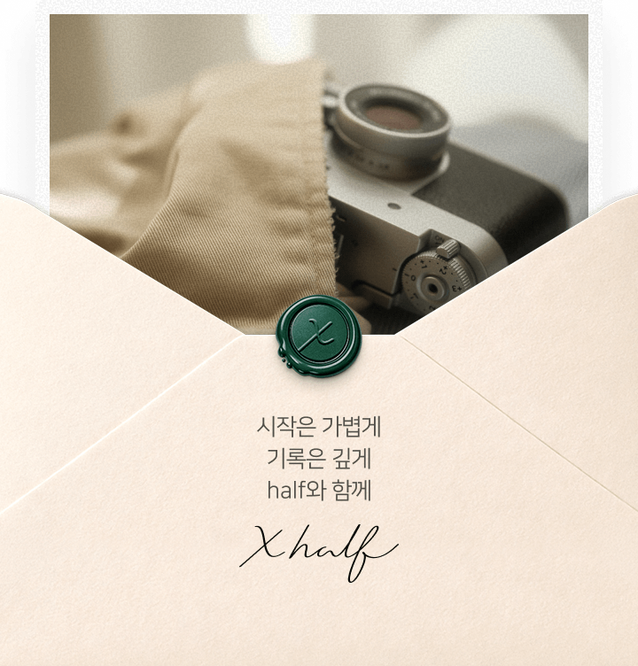 시작은 가벼워야하니까. 그래서 half처음 셔터를 누르는 순간도, 다시 기록을 시작하는 순간도. 당신의 모든 시작을 응원합니다.