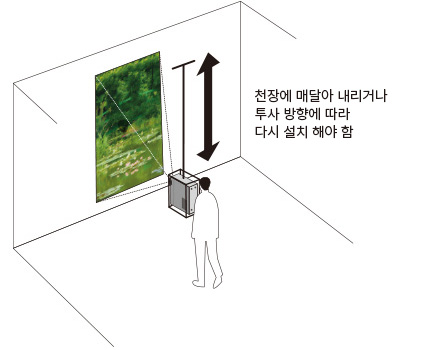 - 프로젝터를 천장에 설치하여 바닥에 투사할 수 있습니다.