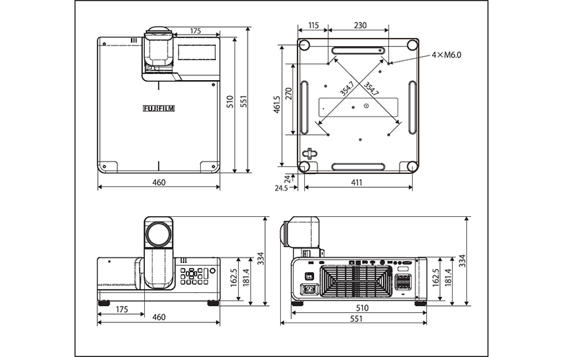 - 투사비*1가 0.34인 초단초점 투사 렌즈는 초근접 범위로부터 최대 300인치 이미지를 투사할 수 있습니다. 100인치 이미지는 FP-Z5000의 경우 오직 75cm*2의 가까운 거리로부터 투사할 수 있으며, FP-Z8000의 경우 오직 72cm*2의 가까운 거리로부터 투사할 수 있습니다.