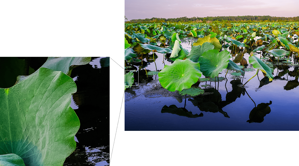 새로운 센서의 픽셀 구조를 개선하여 표준 감도를 ISO 80으로 확장했습니다. 이제 사진가는 그 어느 때보다 더 넓은 다이나믹 레인지와 적은 노이즈로 16비트 이미지를 만들 수 있습니다.